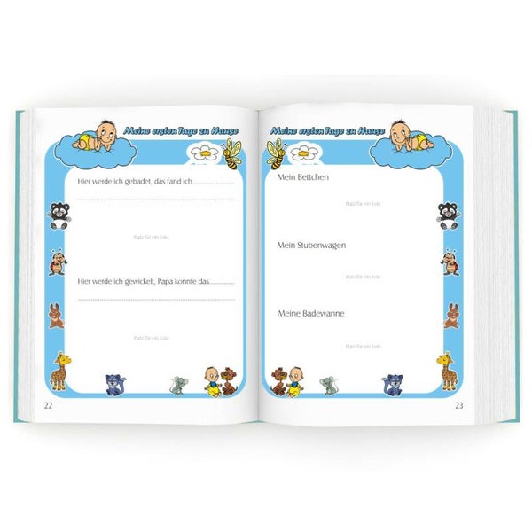 Babytagebuch Jungen, DIN A4, 48 süße bunte Seiten zum Beschriften, Hardcover